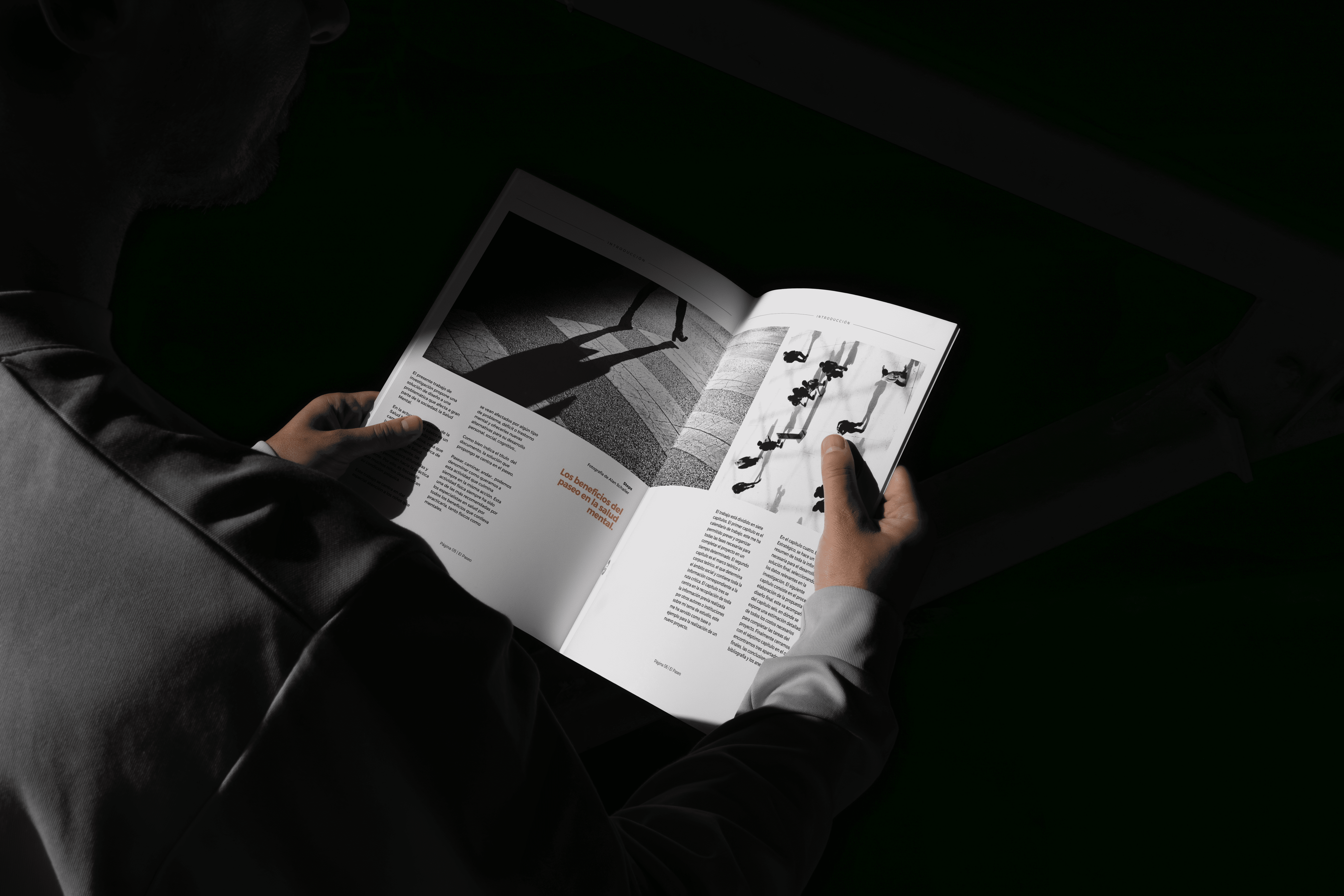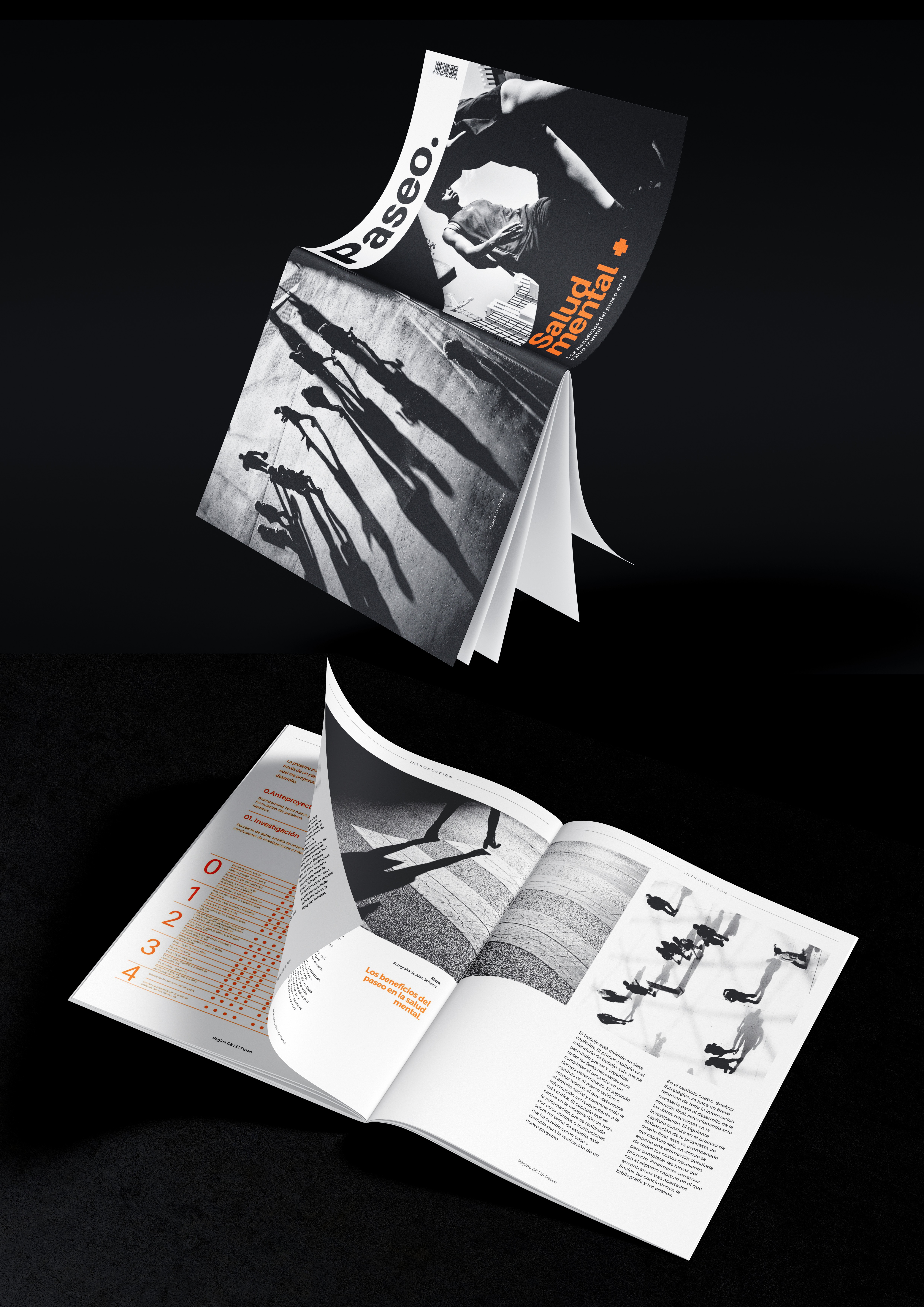 Diseño y maquetación de una revista de investigación sobre el impacto del paseo en la salud. El proyecto parte del trabajo de investigación, estructuración de contenidos y se desarrolla a través de un diseño editorial. La revista combina la narrativa visual, la tipografía y el equilibrio entre texto e imagen.