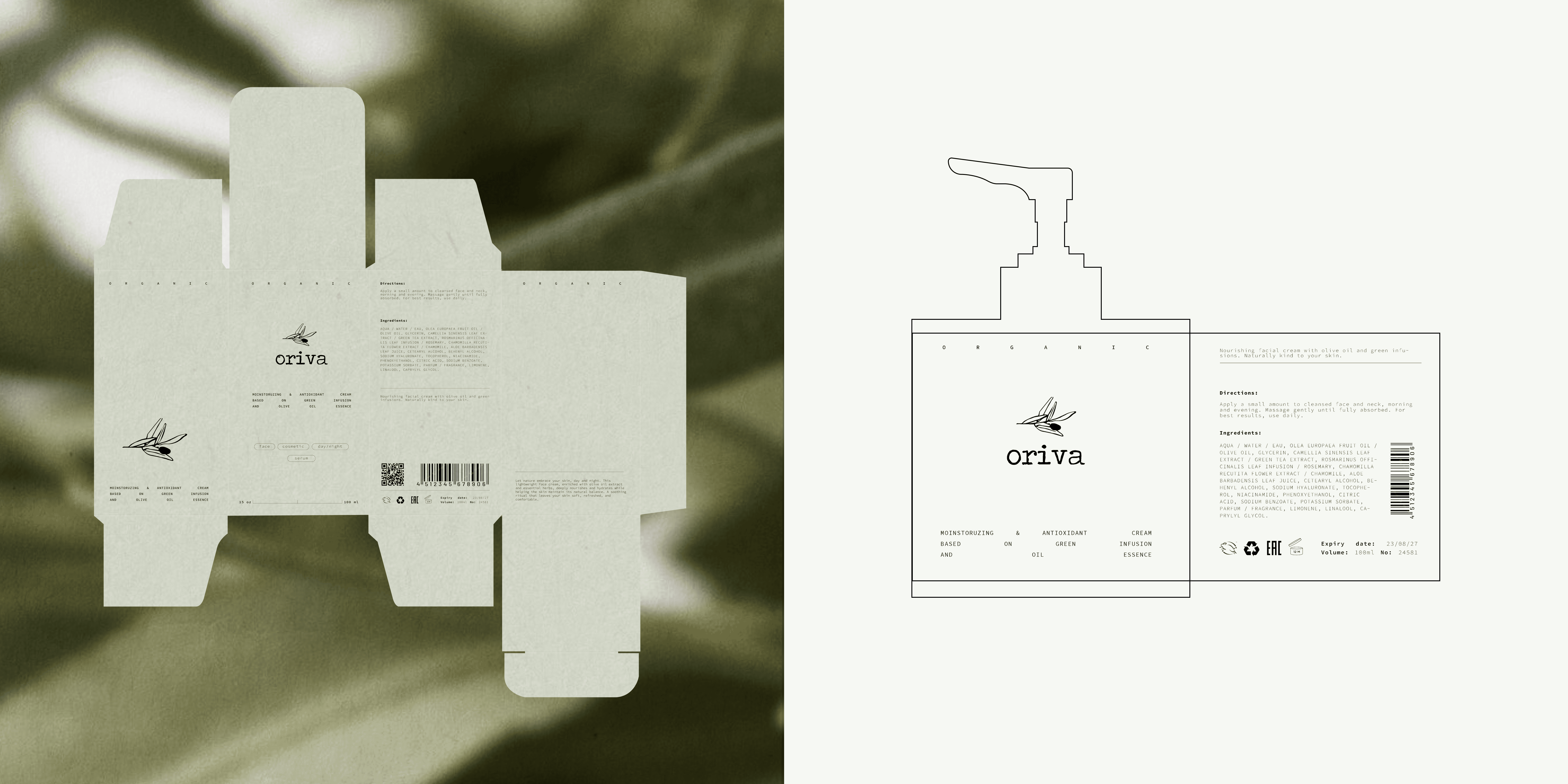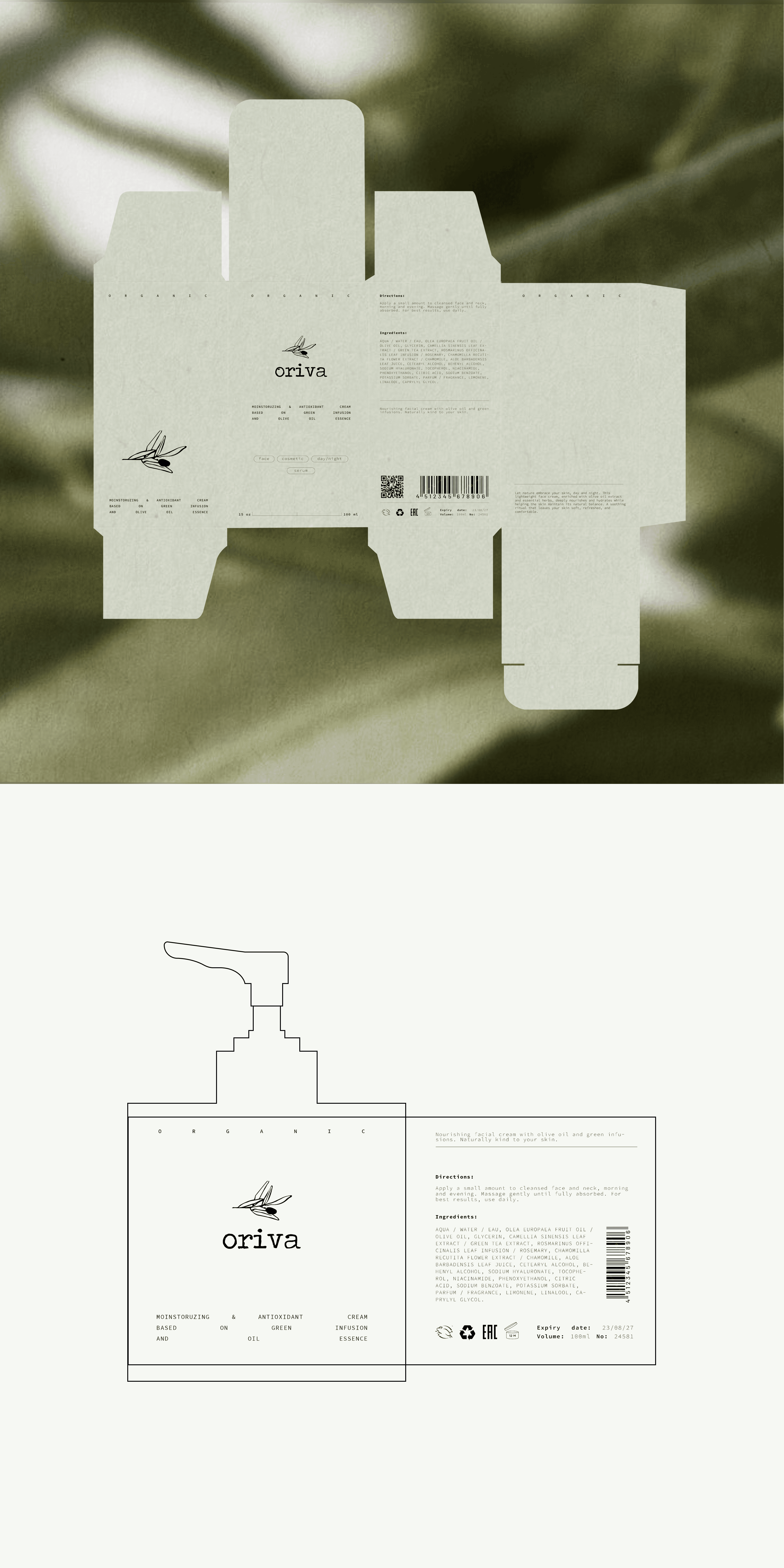 Desarrollo de identidad visual y packaging para Oriva, una marca conceptual de skincare. El proyecto explora un lenguaje gráfico limpio y coherente, enfocado en tipografía, color y composición para crear una experiencia de marca refinada, contemporánea y equilibrada.